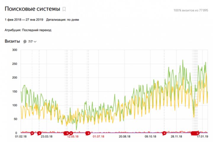 Трафик начал быстро расти из-за охвата большого семантического ядра.