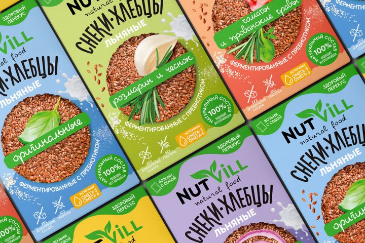 Разработали для бренда полезного и здорового питания «NutVill» дизайн логотипа и упаковки. Упаковку сделали не только стильной, но и максимально информативной — наглядная таблица с пищевой ценностью и содержанием в продукте витаминов и минералов, полезная информация на обороте упаковки для любителей расширить свой кругозор, а также подсказка в виде рецептов блюд, в которых можно использовать содержимое в качестве одного из ингредиентов!