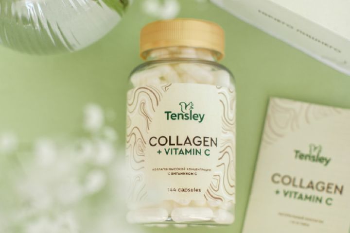 Хотите сохранить красоту и свежесть кожи и волос — тогда коллаген с витамином «С» от «Tensley», для которого мы разработали стильный дизайн логотипа и упаковки, ваш выбор! В дизайне только натуральность — от выбранной цветовой гаммы до паттерна в виде волокон коллагена.