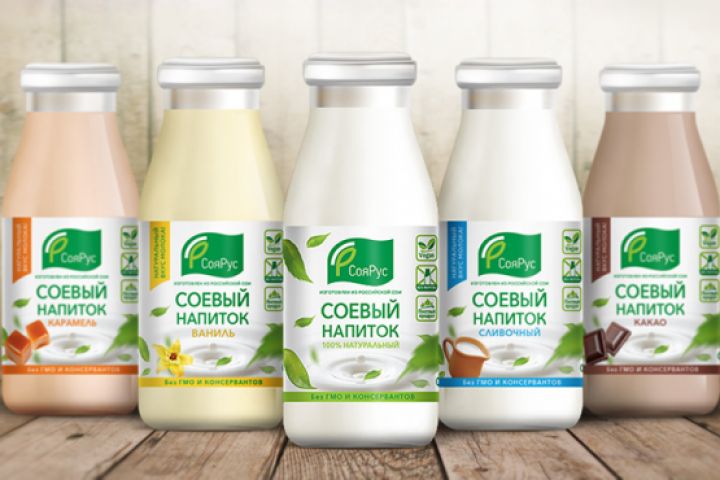 Для линейки соевых напитков компании «СояРус» разработан дизайн упаковки шести позиций. Чтобы подчеркнуть легкость и натуральность продукта в дизайне этикетки использован превалирующий белый цвет. Для привлечения внимания целевой аудитории включены пиктограммы «Vegan», «Без лактозы», «Постный продукт».