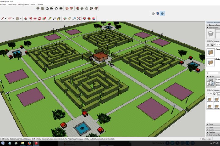 Ландшафтный дизайн парка.3Д (СкетчАп)