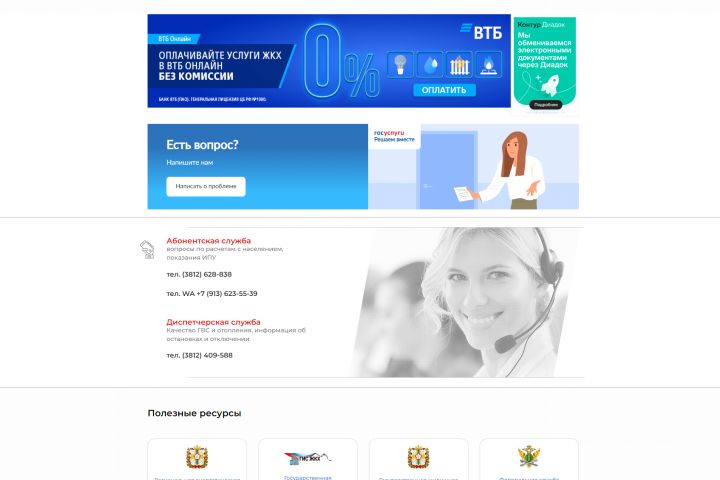 Разработан сайт для ресурсоснабжающей организации на CMS BITRIX, редакция "БИЗНЕС". Произведена двухсторонняя интеграция с 1С Заказчика, подключен интернет-эквайринг от СБ РФ, реализована возможность отправки и отслеживания заявки на технологическое подключение к сетям. Разработан личный кабинет абонента с возможностью отправки показаний счетчиков, просмотра истории платежей, оплаты квитанций.