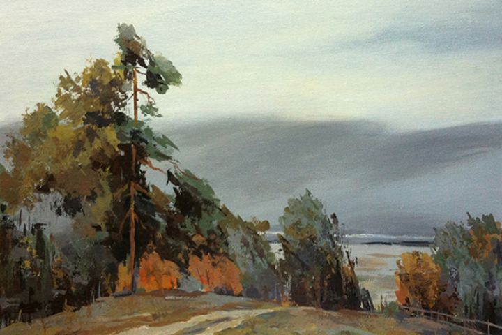 Бирюзовый пейзаж. Акв. бумага, акварель.