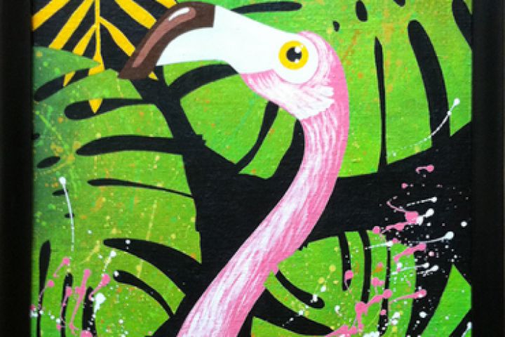Фламинго (в рамке), 42,0х32,0х2,5 см, холст на картоне, акрил. Работа оформлена, имеется в наличии.