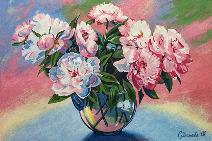 Пионы, 30х40 см, бумага, гуашь.