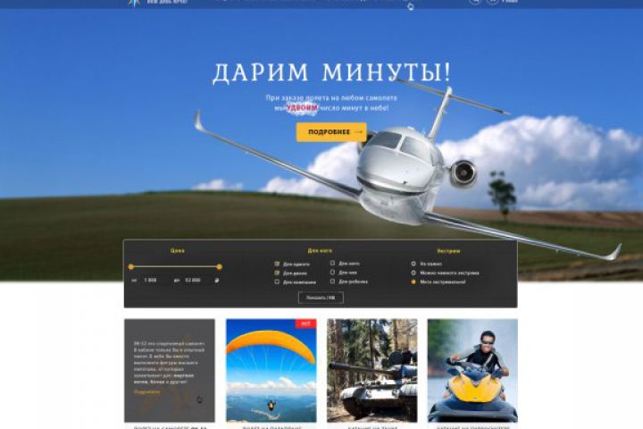 Задача: создать интернет-магазин для компании, занимающейся продажей подарков-впечатлений. Основное направление деятельности - полеты на самолетах/вертолетах/парапланах.