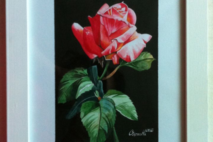 Роза (в рамке), 26,0х34,7х1,5 см, акварельная бумага, акварель. Работа оформлена, имеется в наличии.