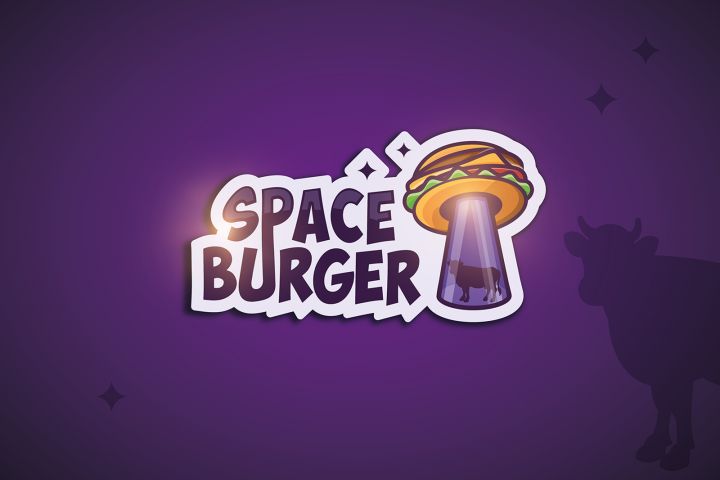 Логотип для бургерной Space Burger. Космически вкусные бургеры, с котлетой из натуральной говядины.