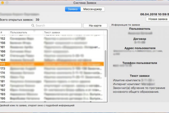 - Просмотр заявки с возможностью просмотра адреса пользователя на карте.