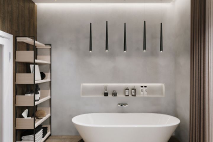 Визуализация ванной комнаты, создана на движке Сorona Render.