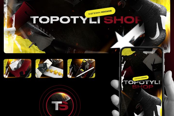 Яркий, агрессивный дизайн для молодёжной группы занимающейся продажей носков.