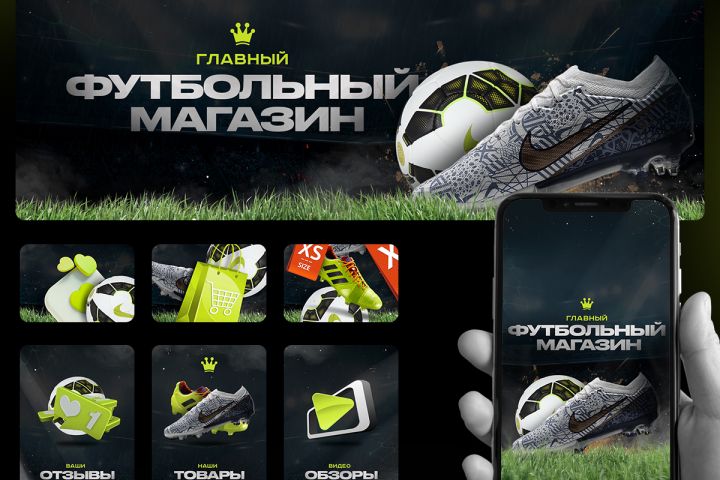Дизайн для сообщества, занимающегося продажей футбольной экипировки.