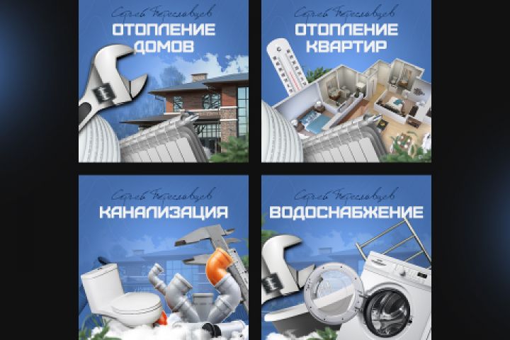 Оформление карточек услуг для группы Вконтакте по сантехническим работам.
