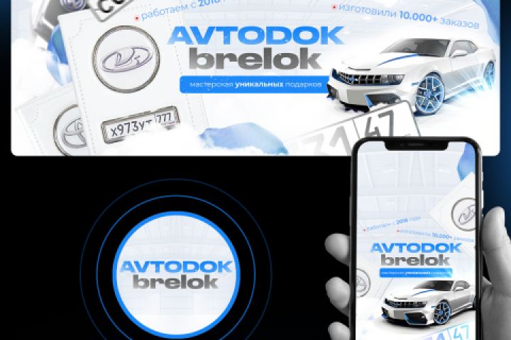 Оформили группу занимающуюся изготовлением обложек на автодокументы и другой сувенирной продукции. Работа выполнена в светлых тонах в сочетании с "дерзким" синим, который не оставит равнодушным потенциального клиента сообщества.