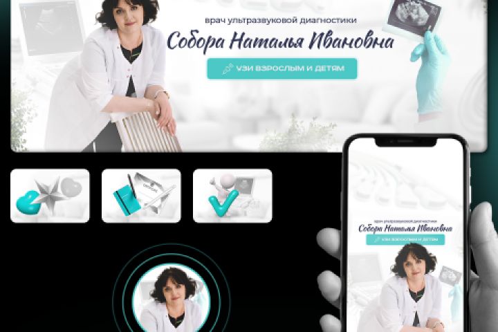 Оформление сообщества врача занимающегося ультразвуковой диагностикой. Дизайн выполнен в традиционной для медицинской ниши цветовой гамме. Очень быстро нашли с заказчиком общий язык, поэтому правки в работе практически отсутствовали.