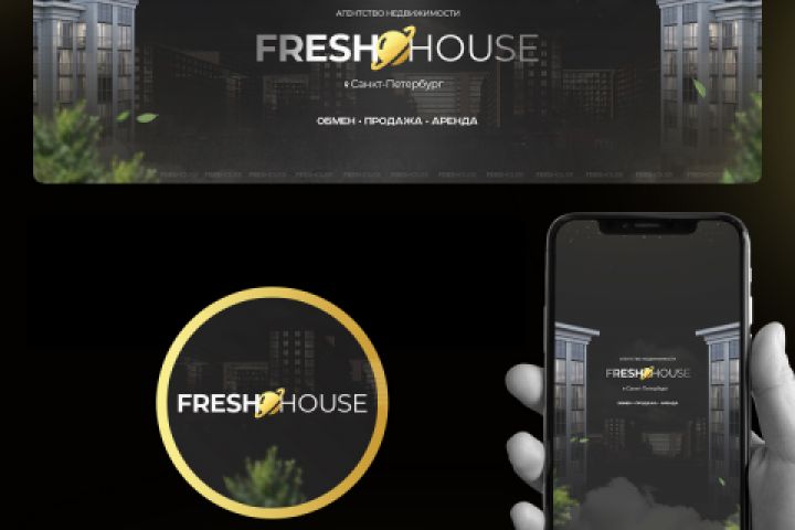Оформление обложки для агентства по продаже недвижимости. Дизайн выполнен в модной для этого сегмента темно - золотой палитре. Клиент остался доволен работой и заказал полную упаковку группы.