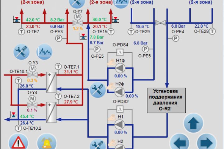 Разработанная система предназначена для управления индивидуальным тепловым пунктом в автоматическом (основном) и ручном (вспомогательном) режиме. Алгоритм работы системы определяется специально разработанным программным обеспечением под специфику объекта. Пользователь имеет возможность контролировать параметры работы индивидуального теплового пункта и изменять режим работы отдельных элементов системы по месту при помощи веб-панели управления или удаленно с помощью системы диспетчеризации.