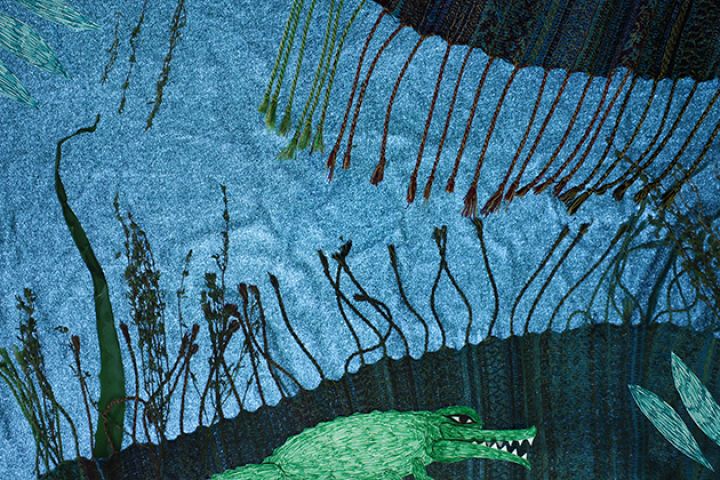 ткань, веточки тимьяна и укропа, алоэ, бумажный крокодил