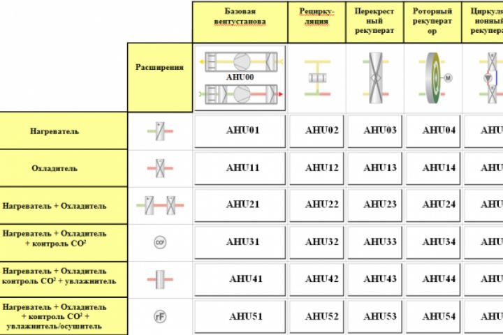Программирование и визуализация вентсистем без рекуперации тепла, с рециркуляцией воздуха, с пластинчатым рекуператором, роторным рекуператором, гликолевым рекуператором. При этом реализуется: