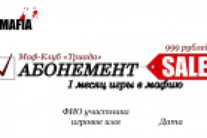 Изготовление карточки абонемента для игры в мафию для сайта: www.maftriada.ru