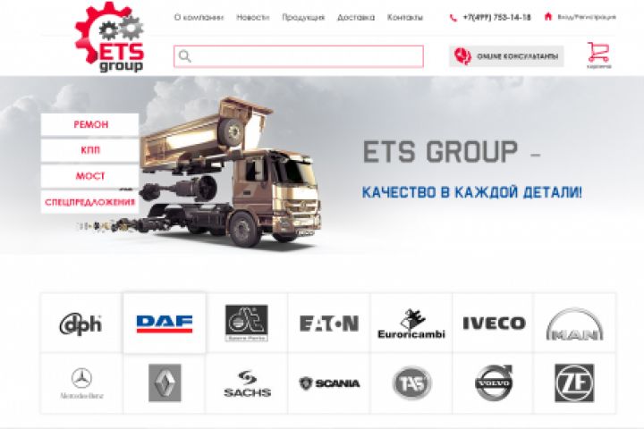 Адаптивный дизайн сайта ИМ по продаже запчастей и комплектующих к грузовикам