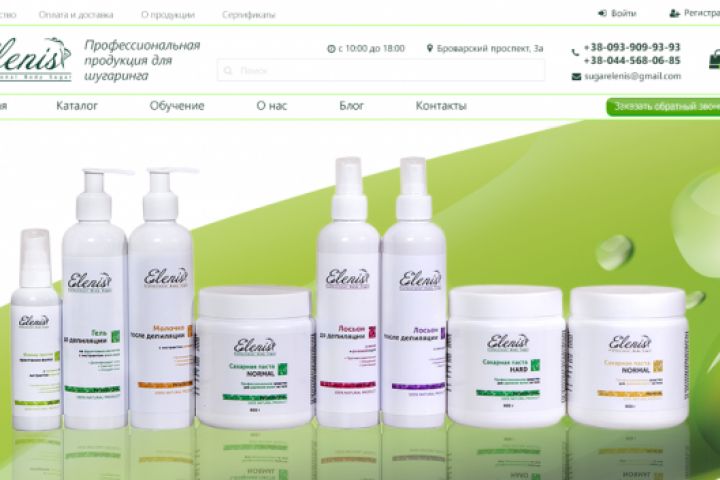 Адаптивный дизайн сайта продукции для шугаринга Elenis