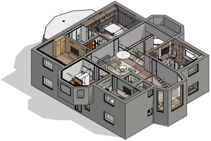 Альбом чертежей для дизайн-проекта частного дома, разработанный в программе Revit