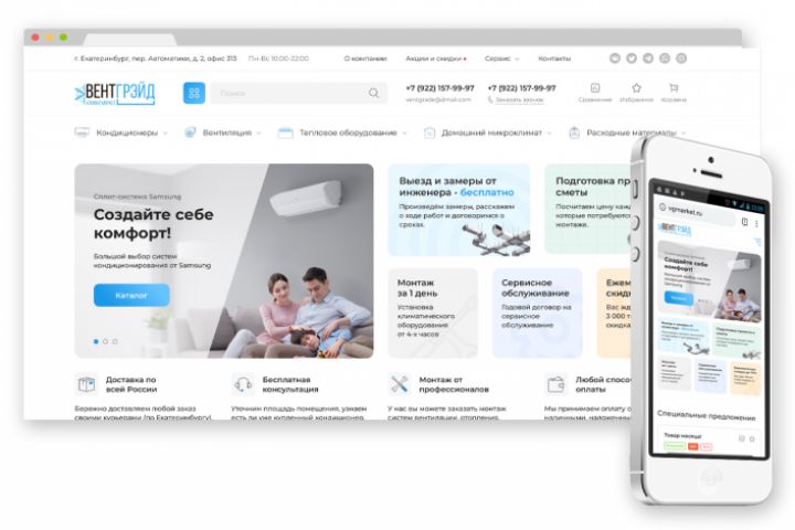Разработка сайта магазина для компании Вентгрейд - климат-маркет