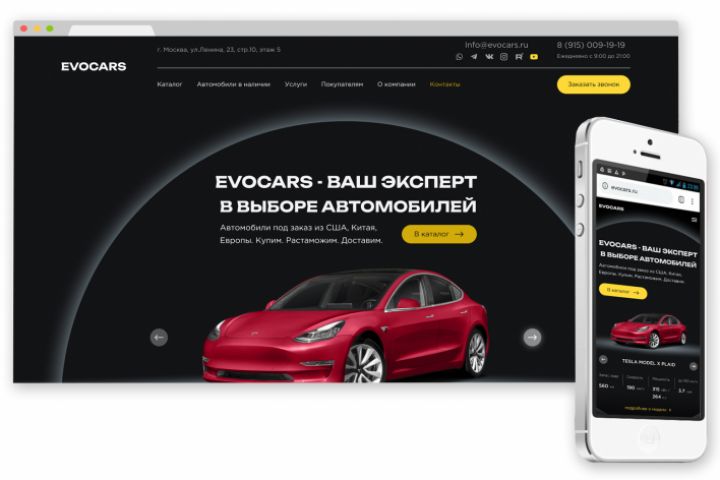Разработка сайа-каталога по продаже автомобилей из заграницы компанией Evocars