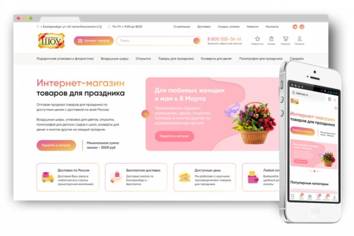Разработать дизайн макеты для интернет-магазина по продаже товаров для различных праздников. Сделать удобный поиск и фильтрацию товаров, удобное добавление в корзину и просмотр корзины. Часть функционала можно взять с СимаЛенд