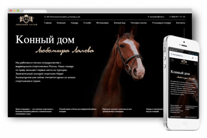Разработан дизайн с персональными фоторафиями, запросили у заказчика фото для дальнейшей замены на макете. Разместили раздел с возможностью добавления на показ каждой лошади, реализовали адаптивную верстку и выполнили сайт на системе управления Opencart 3. Там же был реализован раздел новостей и статей, подробные страницы с услугами конюшни.