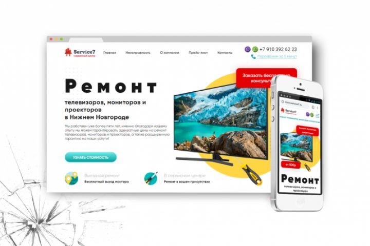 Разработка сайта каталога под SEO и франшизу по ремонту телевизоров, мониторов и проекторов.
