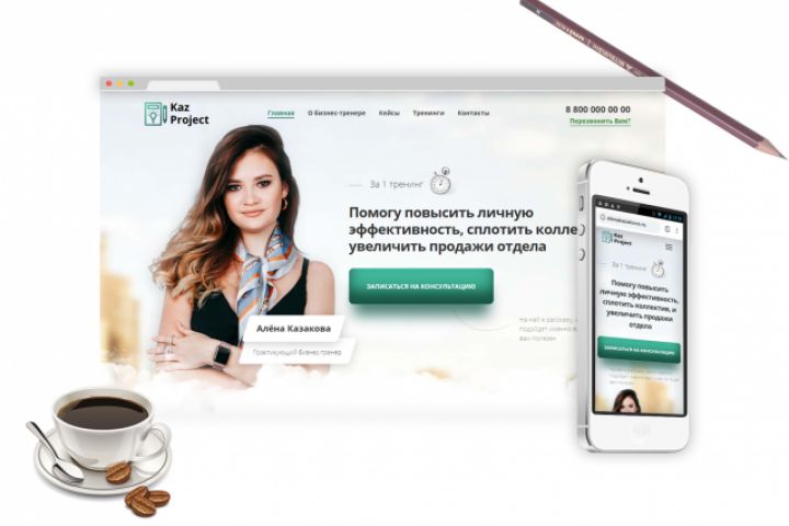 Разработали стратегию и лендинг для бизнес-тренера Алены Казаковой и ее компании KazProject.