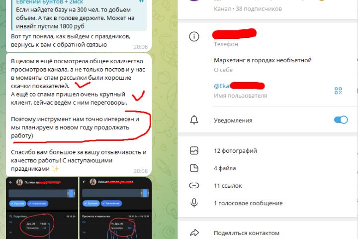 Был создан канал под рассылку, чтобы слать репостами, так как клиенту важно было оценить качество своей базы.
