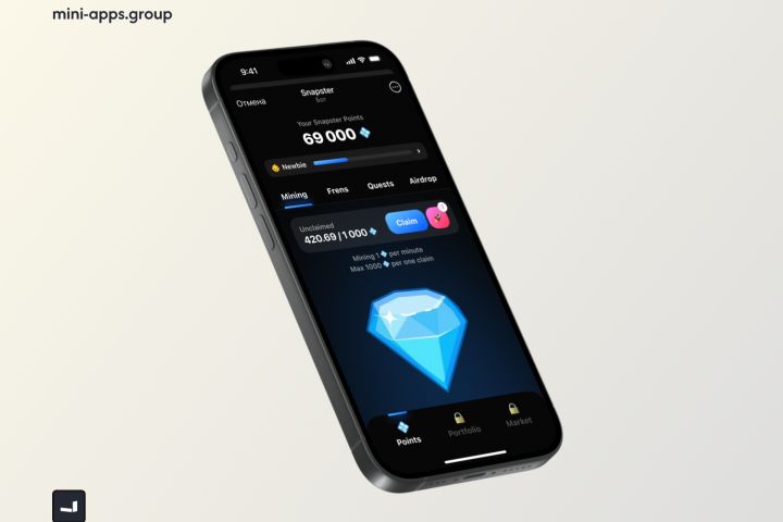 Создан индивидуальный дизайн, учитывающий все детали. Реализована система получения snapster-поинтов за выполнение простых заданий, сбор ежедневных наград, приглашение друзей и получение процентов с их накоплений.