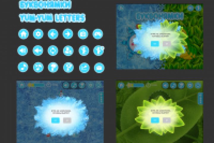 Элементы интерфейса обучающего приложения "Yum-yum letters"