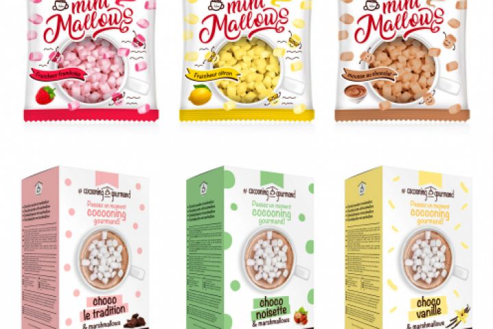 Новый дизайн упаковки маршмеллоу для французской компании Cocooning Gourmand. Дизайн был сделан для французского рынка и европейского потребителя. Маршмеллоу используется для кофейного напитка, горячего шоколада или самостоятельно. Это новый продукт для французского рынка и он нуждался в новом дизайне упаковки. Был сделан дизайн для ассортимента в коробках и пакетах. Был сделан дизайн для ассортимента из разных вкусов и ароматов.