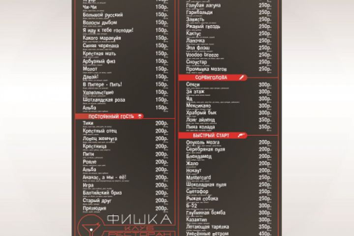 Меню для бара