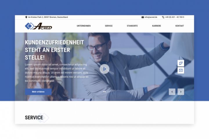Корпоративный сайт для страховой компании Acred, находящейся в Германии. У клиента уже был сайт, который не способствовал решению бизнес-задач и не соответствовал современным трендам. Мы это исправили - применив весь предыдущий наш опыт в создании корпоративных сайтов, учитывая бизнес-процессы заказчика. В итоге сравнив с лучшими практиками подобных интерфейсов - все остались довольны. Сайт успешно работает и приносит прибыль компании уже больше года.