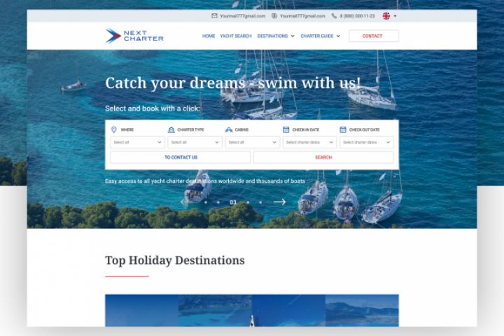 Сервис по подбору и бронированию чартеров яхт - Next Charter. Задача - используя эмоциональный веб-дизайн создать удобный интерфейс для поиска и подбора чартеров яхт. Пользователь должен был не только сильно захотеть найти и забронировать чартер, но и не встретить сложностей в этом процессе. Насколько это удобно и привлекательно, вы можете убедиться сами - https://nextcharter.com/