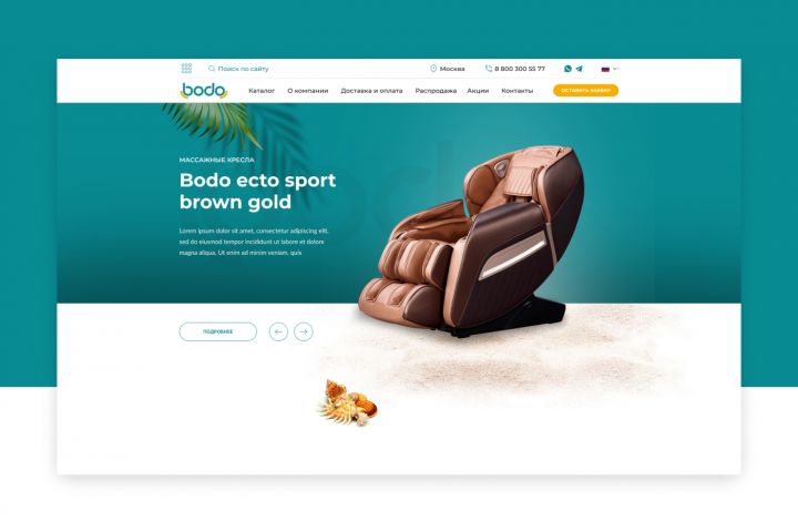 Российский филиал немецкого бренда Bodo (продажа массажных кресел и прочего массажного оборудования), решил создать интернет-магазин в РФ. Ранее у заказчика были попытки создать данный интерфейс, но результаты его не устраивали. Было предоставлено подробное ТЗ, которого оказалось недостаточным для реализации всех "хотелок" клиента. Нужен был продающий, удобный, с большим количеством анимации интернет-магазин с промо-дизайном. И спустя пару месяцев все случилось - проект был утвержден и протестирован.