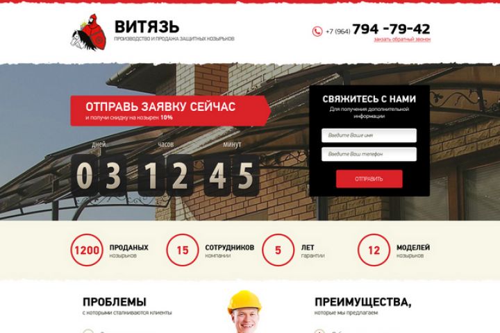 Лендинг. Компания "Витязь"