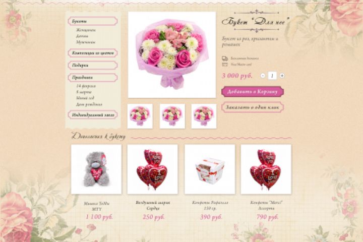 Разработка дизайна карточки товара службы доставки цветов. Задача: оформить во французском стиле