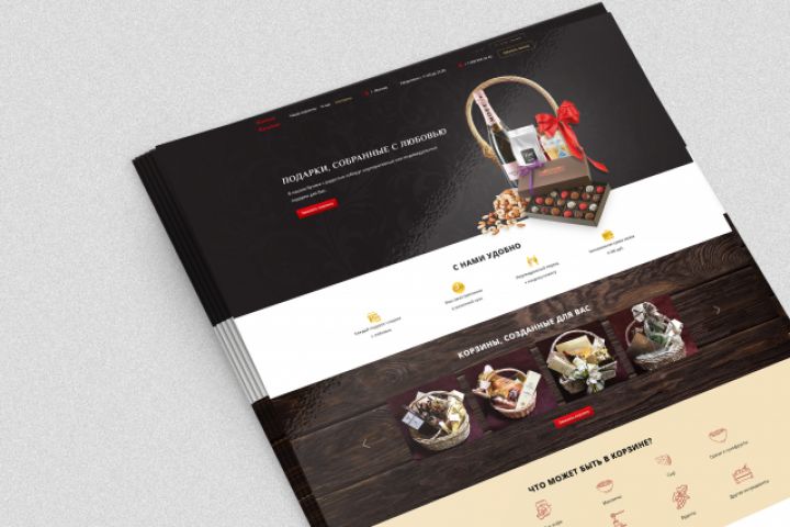 Разработка сайта в формате Landing Page винного бутика "Винные желания", занимающейся упаковкой подарочных корзин и продажей алкогольной продукции. Акцент на корзинах с любым наполнителем, которые станут приятным подарком для любого повода.