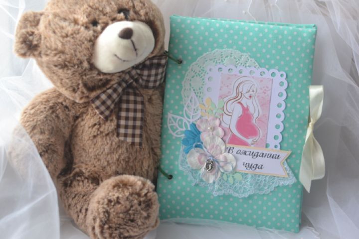 Обложка обтянута мягким хлопком. Внутри цветные странички, есть отдельная страничка на каждую неделю беременности (с 5 по 40 неделю). А также рядом с каждой неделей красивая разлинованная страничка для записей того, что будущая мамочка сочтет важным. Есть страничка с важными телефонами и понедельным графиком набора веса. Несколько страниц отведены под фотографии. Также в блокноте есть кармашки, куда можно положить узи, направления и справочки.