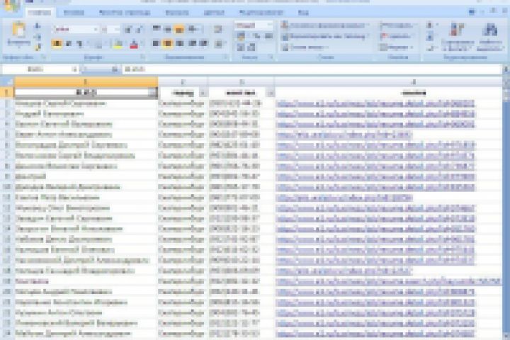Составление базы торговых представителей города Екатеринбурга. 4 графы, 55 резюме.