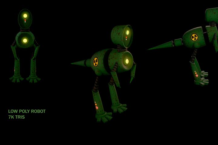Техническим заданием в данном проекте было создание модели робота для художественного рендера. Модель Low poly, количество тризов 7к. Время на работу составило 27 часов. Робот полностью придуман из головы и уникален. Для проекта использовались программы Maya, Marmoset Toolbag 4, Photoshop.