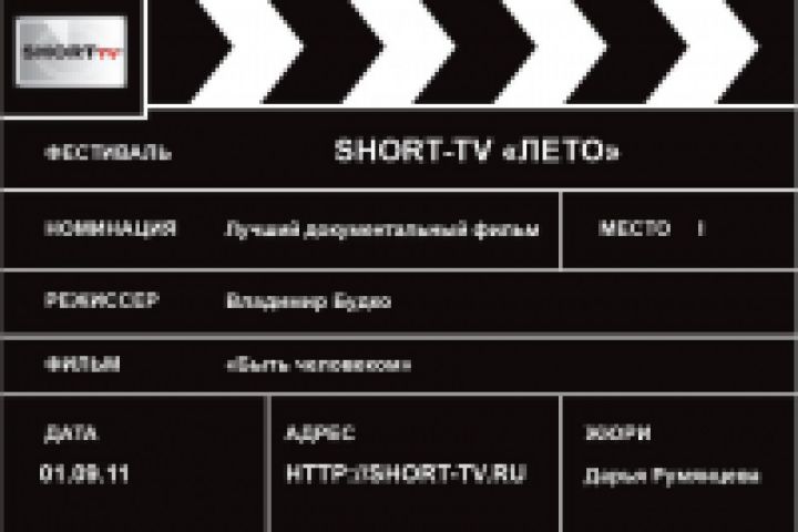 Задача разработать вид грамоты для победителей фестиваля короткометражного кино была решена самым простом способом - грамота имеет вид киношной "хлопушки".