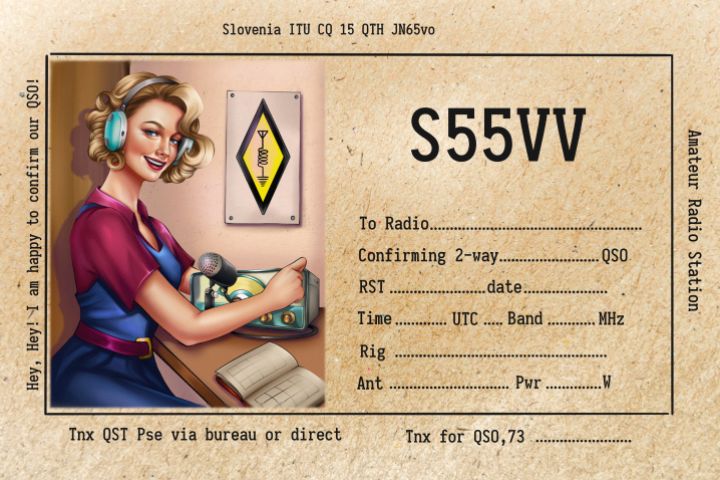 Карточка радиолюбителя в стиле пин-ап