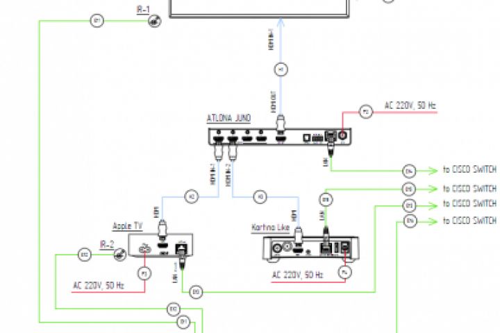 Функциональная схема оборудования для системы мультирум на частной яхте.